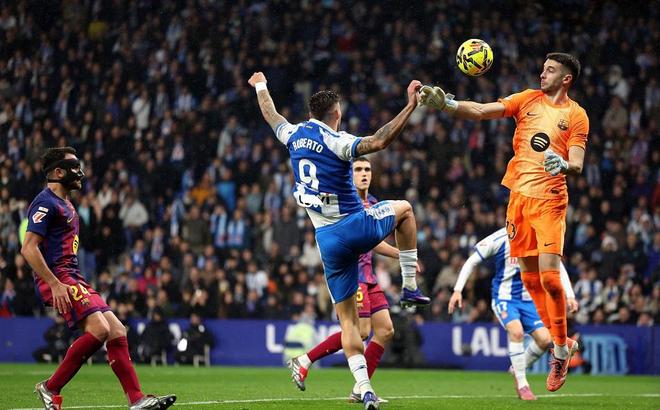 面对西班牙人的气势,巴萨选择用控球降低节奏,避其锋芒。边路的亚马尔频频利用个人能力制造威胁,而费兰托雷斯的头球也是擦着立柱偏出。第39分钟,西班牙人边路再度打出精彩反击,罗梅罗精准传中,米拉门前头球攻门,再次被霍安加西亚神奇扑出底线。半场比赛结束,两队均未破门。